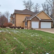 One of today's pressure washing projects was for our new customer Darcy of Sartell. Our standard house washing procedure took care of all of the bugs, cobwebs and organic growth present on the home. We also cleaned the windows after the house washing.