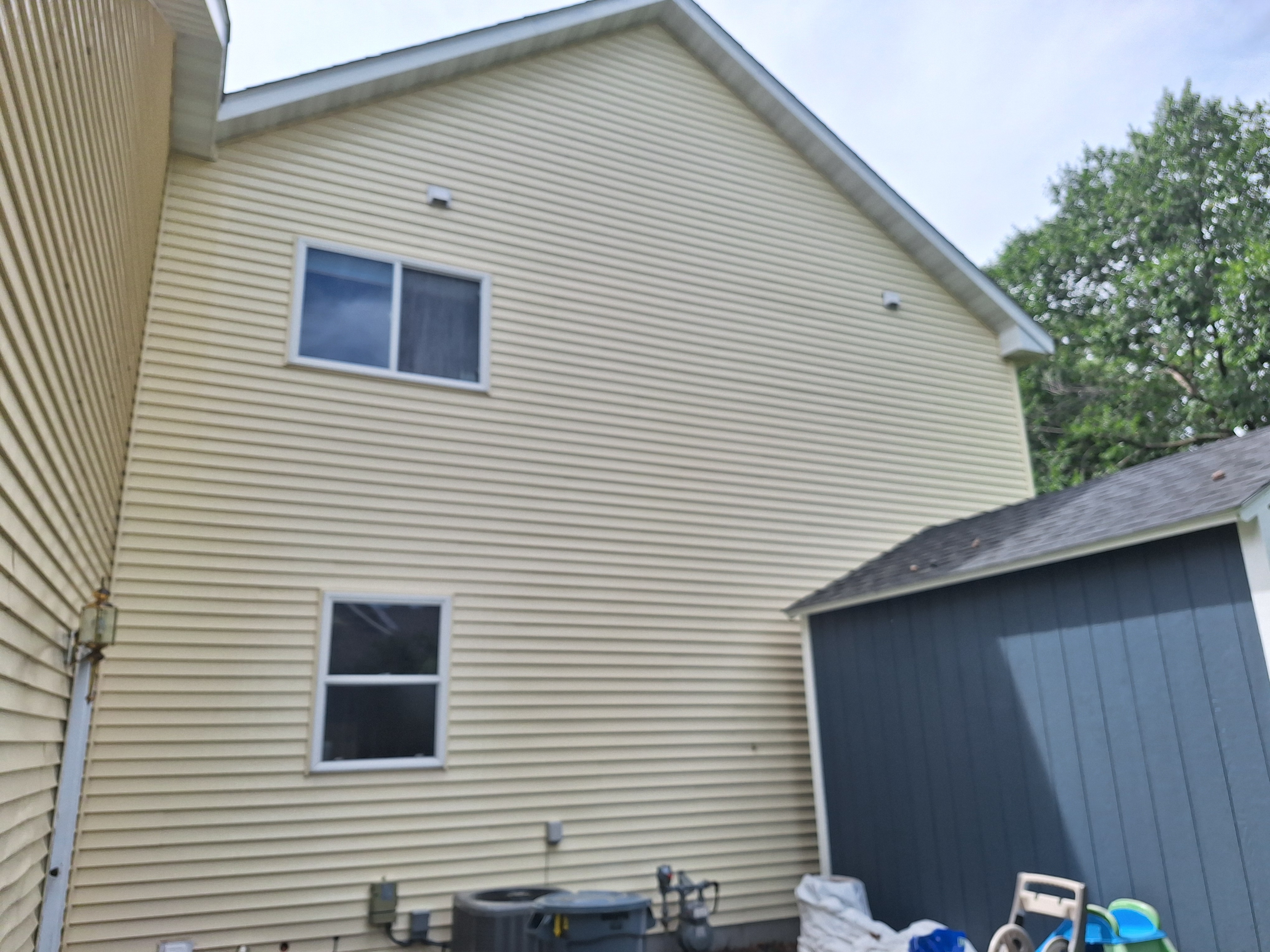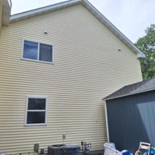 This lovely yellow two story home in St. Cloud Minnesota was looking alot more green and black prior to our house washing service. Angela was referred to us by her neighbors. We have washed three of her neighbors in the past two years. We provided a proposal over the phone. She thought it was reasonable and affordable. We softwashed her families home and removed all of the organic growth, dirt and debris. Angela was shocked by our house washing results. Her home is bright yellow and white once again!